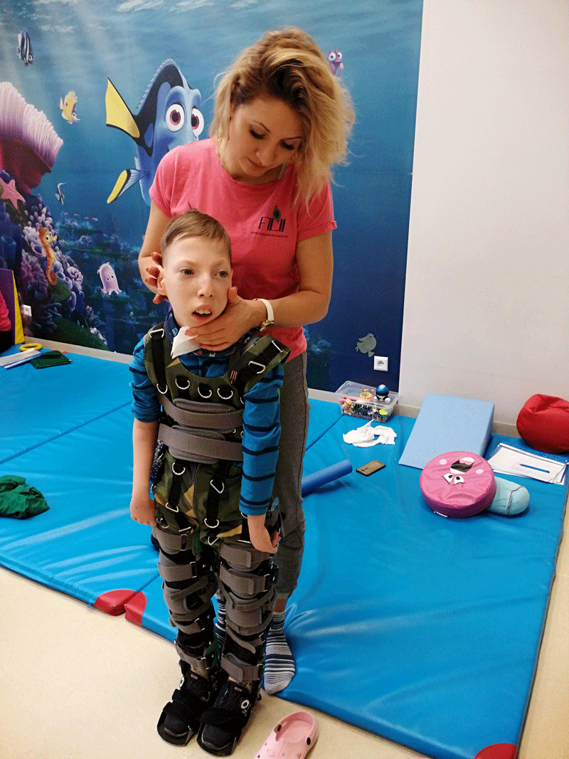 Dzięki Firmie Budimex SA, Dominik mógł podczas ferii zimowych pojechać na turnus rehabilitacyjny do „Filii” Centrum Rehabilitacyjno-Terapeutycznego Sp. z o.o. w Bielsko-Białej. Firma Budimex przekazała środki finansowe na pomoc i rehabilitację Dominika. Jesteśmy ogromnie wdzięczni, że firma Budimex SA pomogła właśnie naszemu dziecku. Jest to dla nas ogromne wsparcie. Dominik cały czas jest rehabilitowany, masowany, ma zajęcia z pedagogami i logopedą, ale kilka razy w roku intensywnie pracuje na turnusach rehabilitacyjnych. Jest to konieczne aby zapobiec przykurczom i skrzywieniom. Na turnusie Dominik ma zawsze 2.5 godziny rehabilitacji na sali oraz godzinę dogoterapii połączonej z terapią ręki, godzinę terapii wzroku, logopedę i SI.