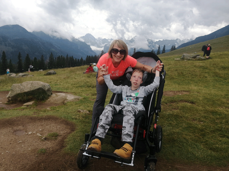 Przyjechaliśmy z deszczem ale za chwile mieliśmy okno pogodowe 🙂 i tak już zostało. Posiłek na polanie z widokiem na Tatry to coś wspaniałego. Do tego ciepłe oscypki z bacówki – rewelacja. Niestety do Wiktorówek nie da się dojechać, jest dużo schodów, a wózek ciężki bardzo, ale rodzice zanieśli mnie na rękach i byłem. Dobrze, że brat zaopiekował się wózkiem. Polecam wszystkim bardzo przyjemny szlak z Wierch Poroniec, zaledwie godzina drogi i piękne widoki. Zobaczcie sami i spełniajcie marzenia: